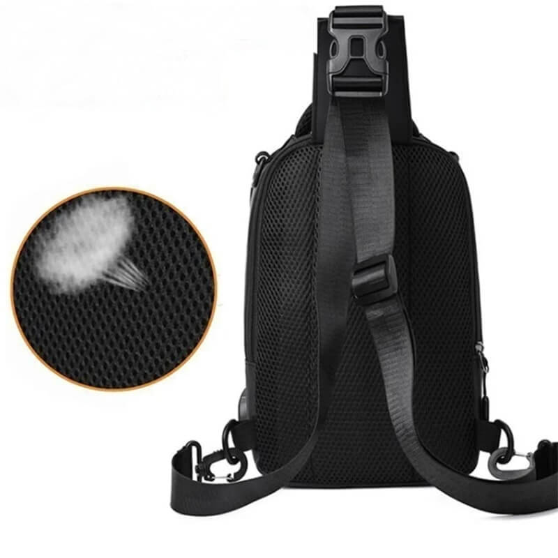 Pustende ryggpanel som forårsaker mindre svett. Utrolig praktisk, spesielt når mann er i farta, eller når mann er på reise i varmere strøk.